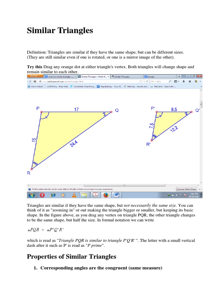 They are the exact same size and shape. Congruent triangles (and other figures). Show that the congruence of triangles is reflexive. We all know that a triangle has three angles, three sides and three vertices. Similar trangles if triangles are similar, the corrosponding sides create equivalent fractions. Overview this math worksheet provides model problems, practice proofs and an engaging activity on the topic of proving triangles are congruent by the side angle side postulate and the angle side angle postulate. Recall that two figures are said to be congruent, if they have the two figures having the same shape (and not necessarily the same size) are called similar figures. Identify the given triangles as visually similar, congruent or neither. If so, state how you know they are similar and complete the similarity statement. Because triangles have so many interesting properties that build upon each other, you can count on seeing them on the new sat. Sign up with facebook or sign up manually. Wo if you claim the triangles are congruent or similar, create a flowchart justifying your answer v x y z l o n v i l u n h i j. Are they applicable in the case of similar triangles?