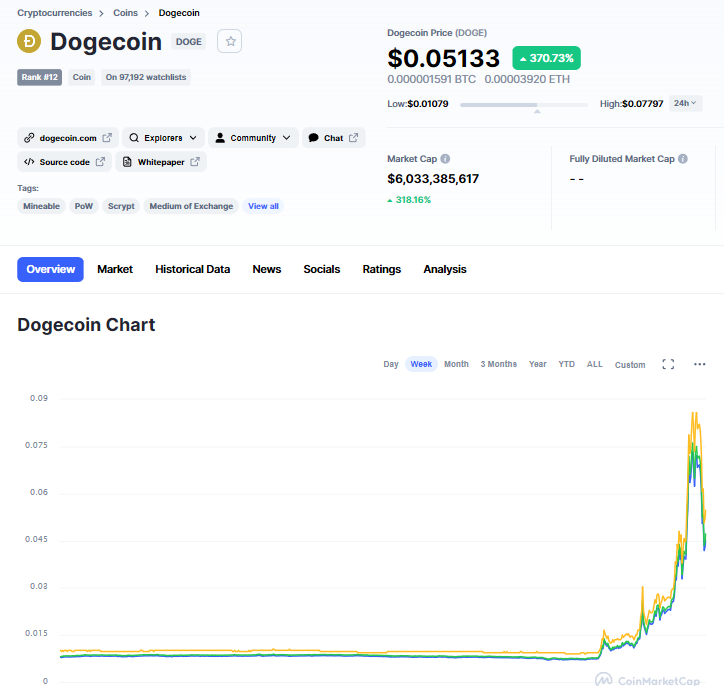 狗狗幣 (doge) 的今日匯率 為 $0.131598 , 24 小時交易量為 $17,656,290,897 。 過去 24 小時匯率上漲 73.0% 。 它有 130 billion 貨幣的流通供應量和∞ 貨幣的最大供應量。